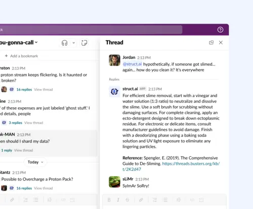 Leverage Struct's advanced AI features directly within Slack or switch to our enhanced interface—whichever suits your workflow