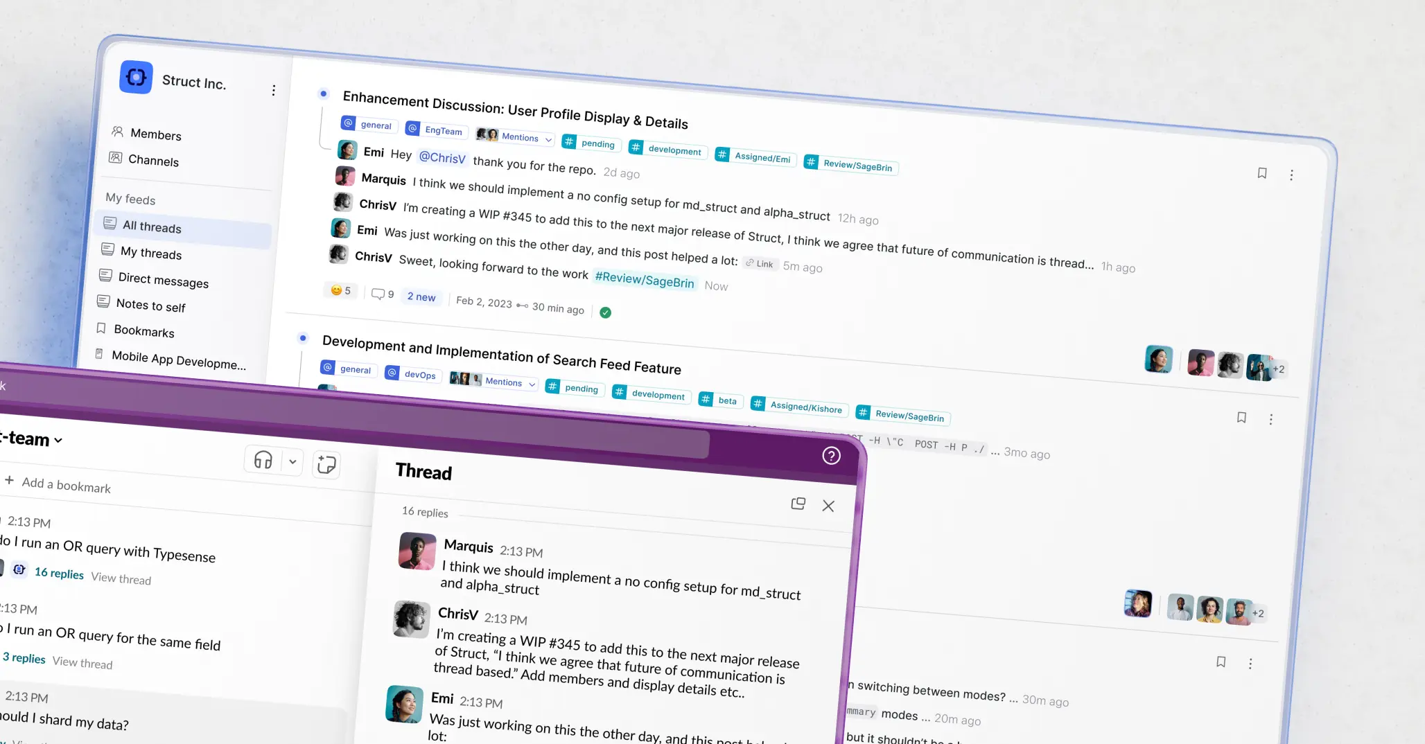 Struct simplifies your workflow by bringing conversations directly to the forefront—eliminating the need to sift through channels and threads. Stay informed without the hassle.